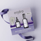Lorsque le crépuscule s’invite, le ciel se teinte d’un dégradé envoûtant de violets profonds. Pendant la nuit, la nature se régénère. À son image, ce coffret infusé de collagène lisse et repulpe la peau en profondeur.